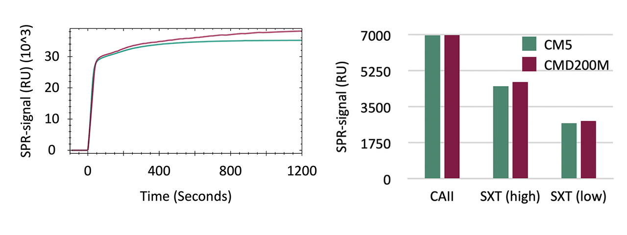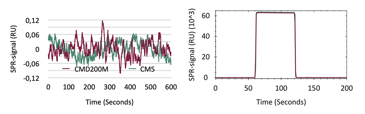 To provide clear, data-driven guidance for users, CMD200M was directly evaluated against the CM5 sensor chip across all relevant performance dimensions. The results reveal how both surfaces behave under identical experimental conditions, and where CMD200M offers measurable advantages.