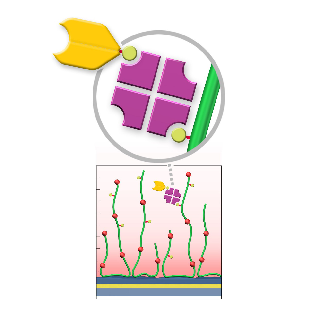 To minimize steric hindrance, diffusion artifacts and nonspecific binding to carbohydrate motifs, XanTec has made efforts to substitute polysaccharides such as CM-Dextran with a better defined polycarboxylate with excellent bioinertness and smaller molecular footprint compared with the relatively bulky saccharides. The linear, unbranched, highly hydrated polymer chains of the HC hydrogel are extremely flexible; thus, they give immobilized ligands a high degree of freedom and the ability to interact in a cooperative manner with larger analytes.