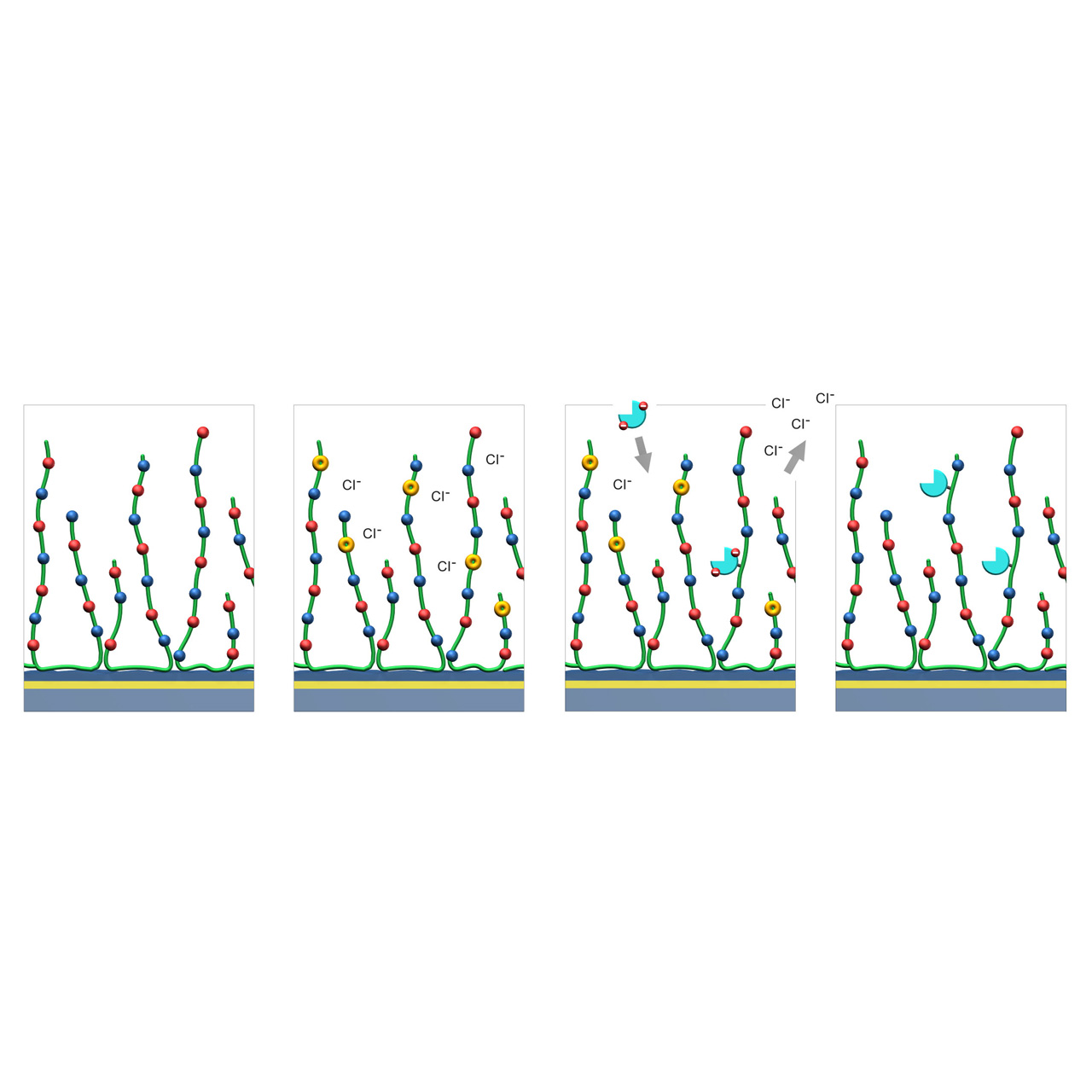 2 All illustrations are schematic representations and are not drawn to scale; dimensions, densities, and spatial relationships do not reflect actual physical or chemical proportions.