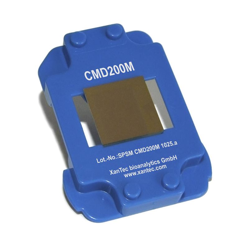 The CMD sensor chip portfolio spans electrostatic immobilization capacities from a few thousand μRIU (CMDP) to about 50,000 μRIU (CMD700M), covering analytes from large viruses to small organic fragments. Owing to this versatility, CMD chips are used in biochemical research, assay development, quality control, trace analysis, and drug discovery. Different chain densities further enhance flexibility:
